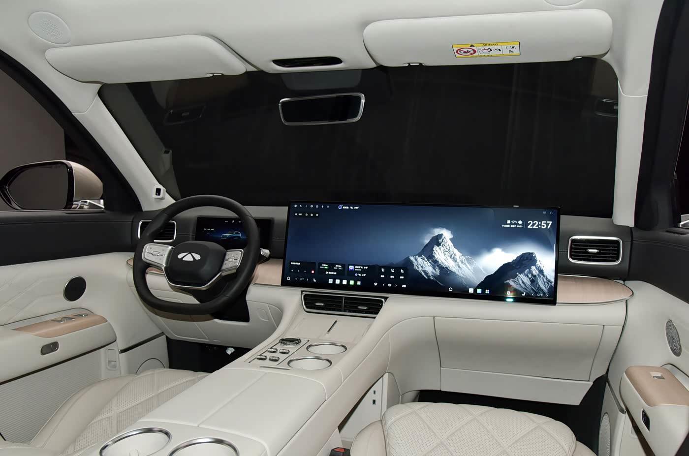 进入车内,座舱标配30英寸4K一体式屏幕,搭载高通8295芯片与奇瑞雄狮智舱系统,支持四音区语音交互。中控台采用悬浮式设计,集成50W无线快充与冷暖冰箱(-6℃至50℃调节)。2+2+2六座布局中,第二排配备零重力座椅(带16点按摩/通风/加热),第三排座椅支持电动放倒,后备厢容积可从580L扩展至1620L。